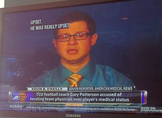 Here is a rough transcript of my ESPN appearance (scroll down, no video found yet UPDATE: here’s the video), which includes a few of the sweetest words I’ve ever heard uttered: “Now we say hello to Kevin O’Reilly, who reports for American Medical News and first broke this story.”